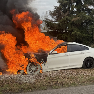 BMW gaat in vlammen op in Veghel, bestuurder weet tijdig te ontkomen