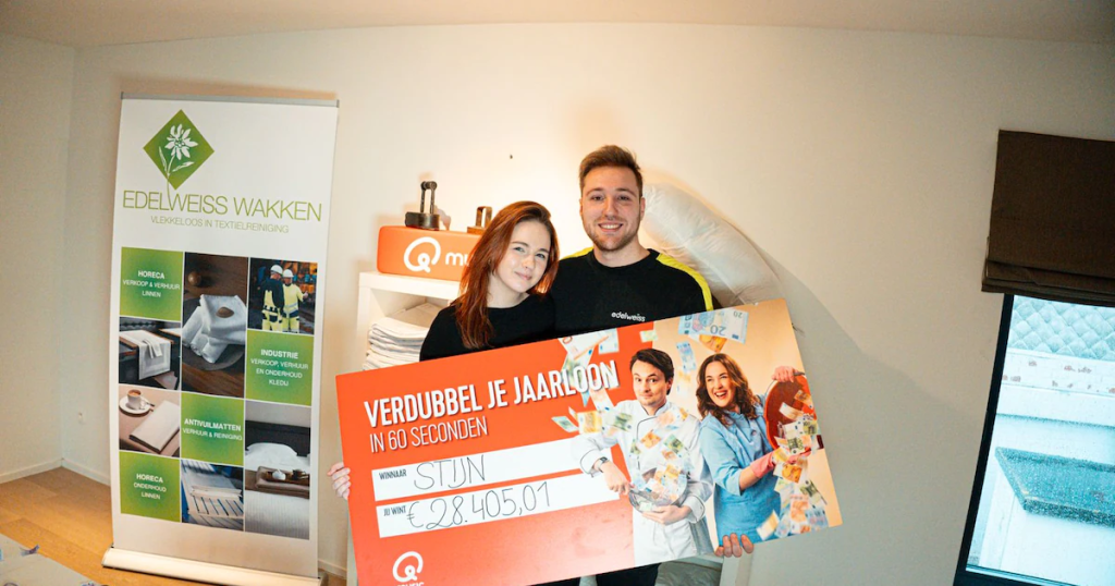 Na iets meer dan twee weken kent ‘Verdubbel je jaarloon in 60 seconden’ van Qmusic zijn winnaar. Niemand minder dan luisteraar Stijn Sanspeur uit Oostrozebeke wist in 60 seconden 10 vragen juist te beantwoorden. Daarmee wint hij zijn volledig netto jaarloon als chauffeur bij wasserij Edelweiss Wakken, namelijk 28.405 euro.Zijn vriendin schreef hem zonder zijn medeweten in en maar goed ook, zo blijkt. Stijn is een trouwe luisteraar van het spel en dat heeft hem duidelijk geholpen. “Ik luister al jaren naar jullie en speel altijd mee via de radio maar ik schrijf mezelf nooit in”, geeft hij vooraf toe.