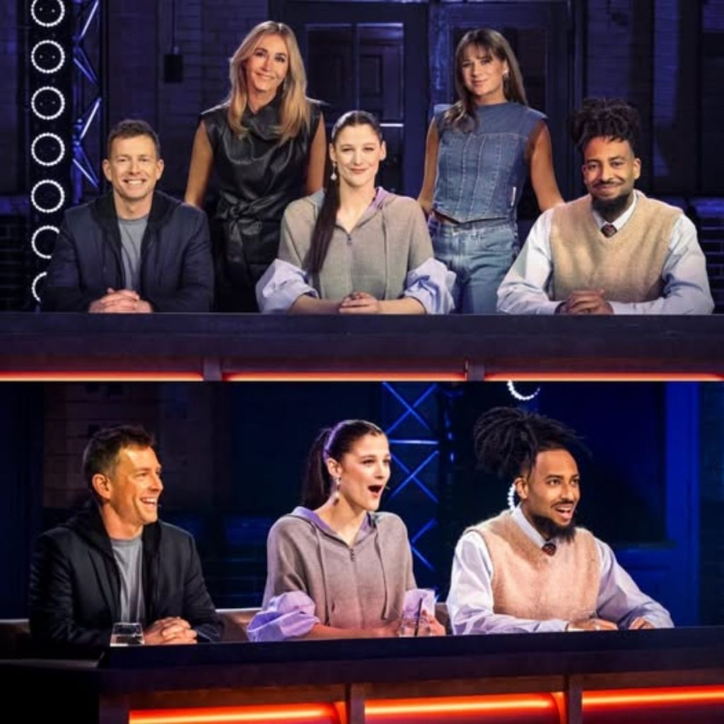 ‘So You Think You Can Dance’ juryleden Dan Karaty, Nora Monsecour en Kenzo Alvares en presentatrices Wendy van Dijk en Laura Tesoro