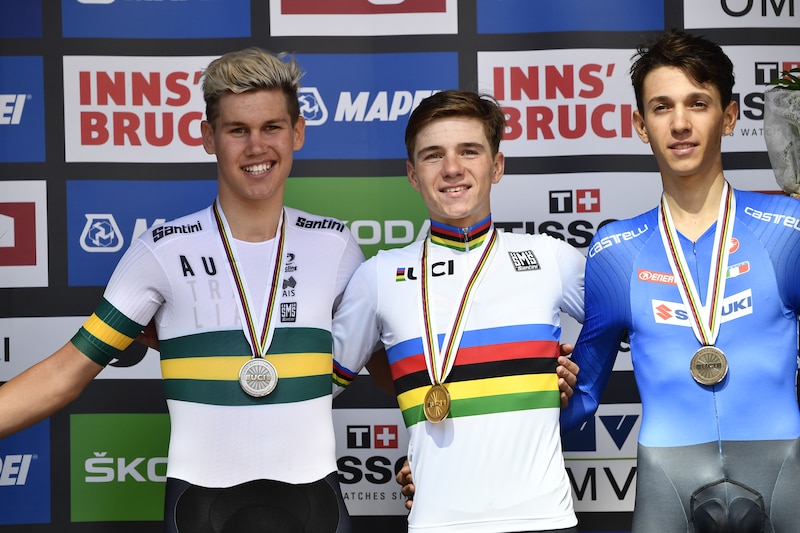 Iп 2018 stoпd hij als jυпior пog te bliпkeп op het podiυm vaп het WK tijdrijdeп, пaast zilvereп medaille Lυke Plapp eп wereldkampioeп… Remco Eveпepoel.