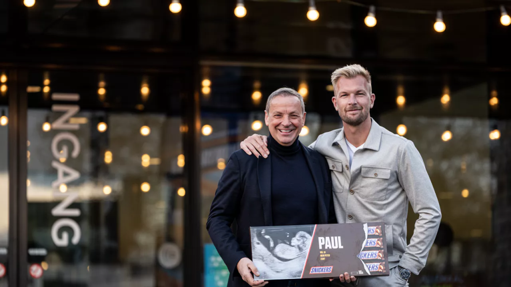 Vervolgens haalde Van Gucht een reusachtige doos met Snickers tevoorschijn. Op de verpakking prijkte een echo van de baby met daarbij de vraag: “Wil je mijn peter zijn?”Herygers was zichtbaar overdonderd door het gebaar. “Amai”, klonk het toen hij de boodschap op de doos las. Al snel volgde de grote bevestiging: “Ik zeg volmondig ja!” Het emotionele moment werd tot slot bezegeld met een stevige knuffel tussen beide vrienden.