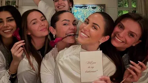De dames werden verwend met enkele accessoires met hun eigen initialen erop, zoals een slaapmasker en een tasje. Ze kregen ook een kettinkje en wat lijkt op enkele make-up-producten. Voor de gelegenheid schonk de toekomstige bruid uiteraard ook een glaasje champagne in. Op de foto lachen de bruidsmeisjes in hun matchende, witte badjassen. Als het uitnodigen van de bruidsmeisjes er al zo luxueus aan toeging, belooft dat wat voor het naderende huwelijk.