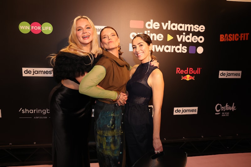 Ook Anastasya ChernookJolien Roets en Kim Van Oncen maakten hun opwachting. Ze zijn genomineerd voor een ‘Podcast Jamie’ met ‘De Mutti’s’ — en kwamen alvast checken of er op de rode loper ook een microfoon stond.
