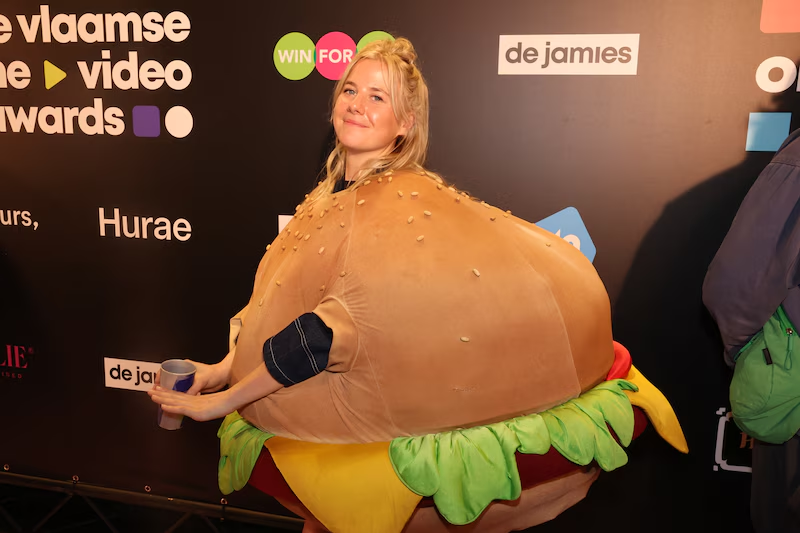 Dorien Nuyts verzamelde online een trouwe fanbase met filmpjes over haar nieuwe leven als frituriste, maar opvallen kan ze ook buiten de frituur. Op de rode loper dook ze op… verkleed als hamburger.