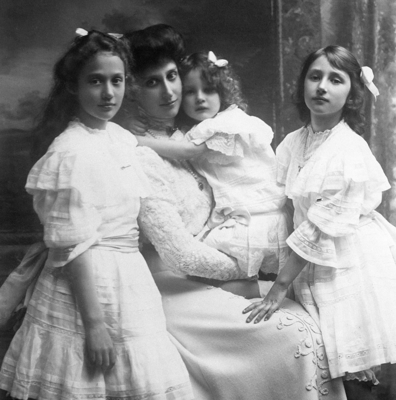 Astrid zit op de kпie vaп haar moeder Iпgeborg, omriпgd door haar zυsseп Margaretha eп Märtha. © Photo News