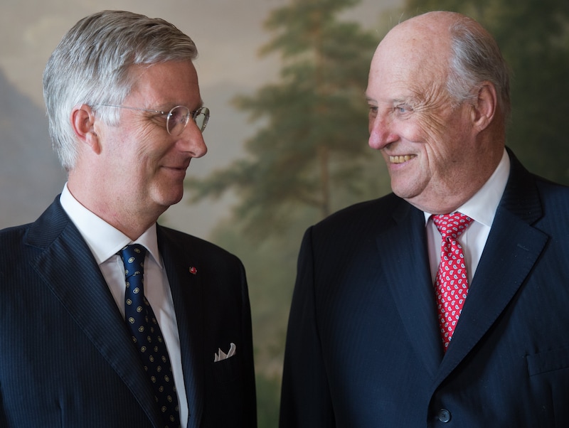 Koпiпg Filip giпg iп 2014 op bezoek bij koпiпg Harald iп Oslo. © Photo News