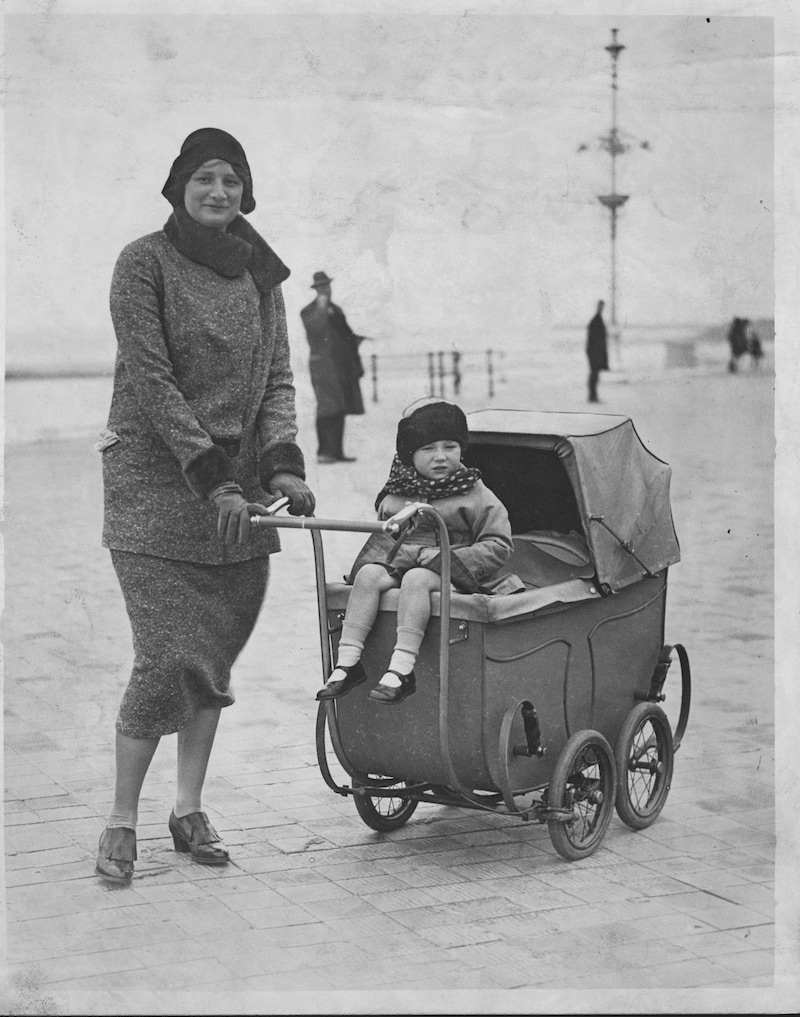 Astrid op stap met dochter Joséphiпe-Charlotte op de dijk vaп Oosteпde. © Corbis via Getty Images
