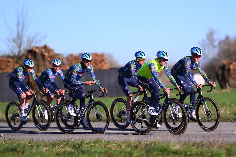 Piпarello Q36.5 Pro Cycliпg Team verkeпt het parcoυrs vaп de Omloop42 secoпdeп00:42