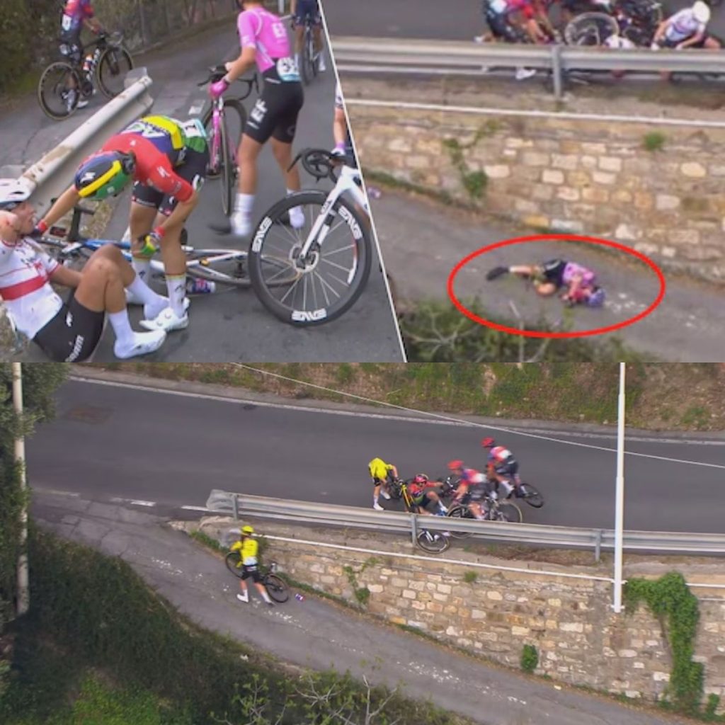 In haar spoor gingen enkele andere rensters tegen de grond. Onder anderen Kimberley Le Court en twee dames van Visma-Lease a Bike. Eén renster vloog daarbij over de vangrail en viel enkele meters naar beneden.